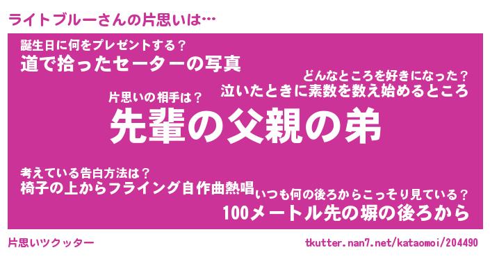 | 胡散臭い通販商品みたいなあだ名 | 『モテモテ間違いなし水晶球…その名も「ライトブルー」』 |