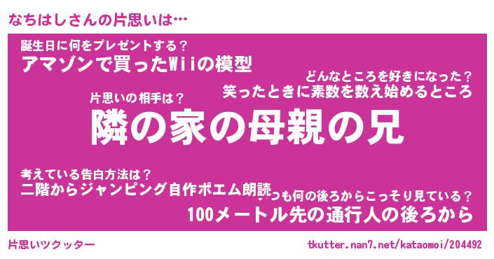 | 胡散臭い通販商品みたいなあだ名 | 『必ず成功するブレスレット…その名も「なちはし」』 |
