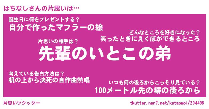 | ヘコむあだ名 | 『はちもー』『つくし』『はちっぺ』 |