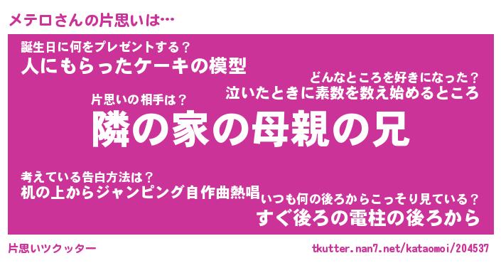 | ヘコむあだ名 | 『メテふぇ~』『酢こんぶ』『メテお』 |