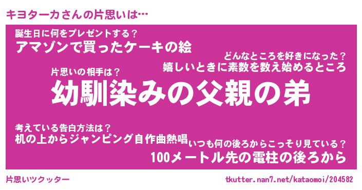 | 男性向けラノベタイトル風あだ名 | 『キヨターカの憂鬱』 |
