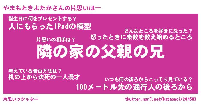 | 男性向けラノベタイトル風あだ名 | 『やまもときよたかの憂鬱』 |