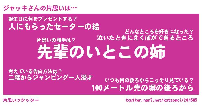 | 意味不明あだ名 | 『ペロリンジャッキ』『永久保存ジャッキ』 |