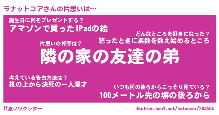 | 男性向けラノベタイトル風あだ名 | 『ラナットコアの憂鬱』 |