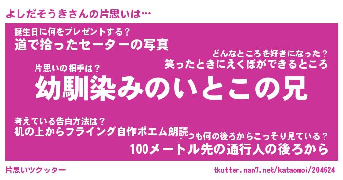 | ヒーロー風カッコイイあだ名 | 『スーパーヨシダソウキ』『幻影騎士ヨシ』 |