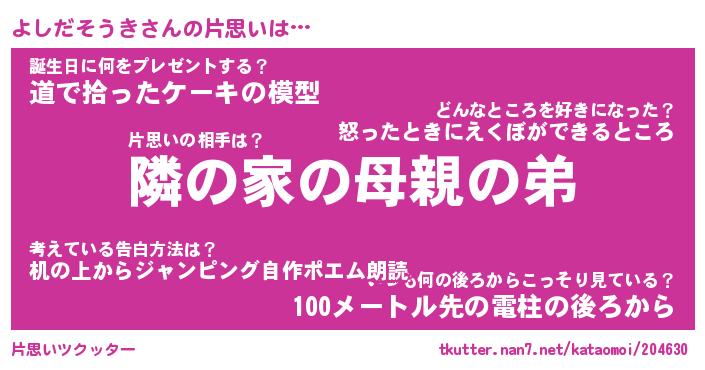 | 肩書あだ名 | 『よしだそうき社長』『よしだそうき班長』 |