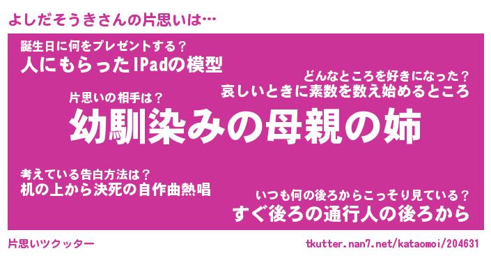 | 女子向けラノベタイトル風あだ名 | 『(仮)よしだそうきのやんごとなき事情』 |