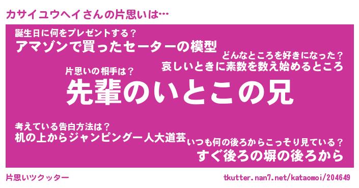 | 胡散臭い通販商品みたいなあだ名 | 『モテモテ間違いなし水晶球…その名も「カサイユウヘイ」』 |