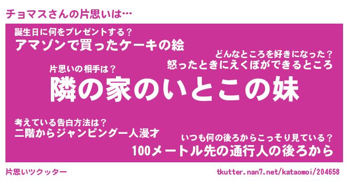 | 意味不明あだ名 | 『ペロリンチョマス』『永久保存チョマス』 |