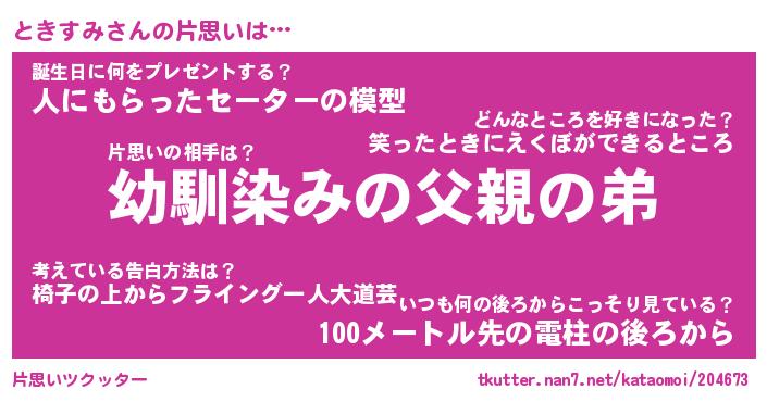 | ファンタジー風あだ名 | 『トキフェル』『エターナルトキスミー』 |