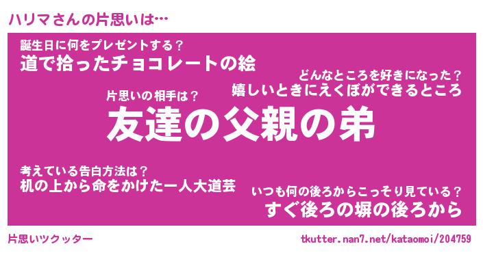 | 胡散臭い通販商品みたいなあだ名 | 『億万長者になれる水晶球…その名も「ハリマ」』 |