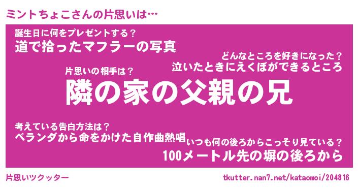 | 胡散臭い通販商品みたいなあだ名 | 『モテモテ間違いなし水晶球…その名も「ミントちょこ」』 |