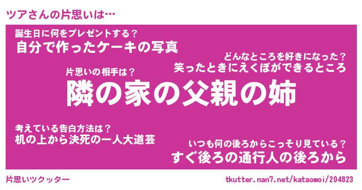 | ヘコむあだ名 | 『ツアふぇ~』『つくし』『ツア(笑)』 |