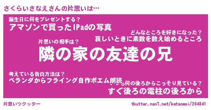 | 男性向けラノベタイトル風あだ名 | 『さくらいさなえの憂鬱』 |