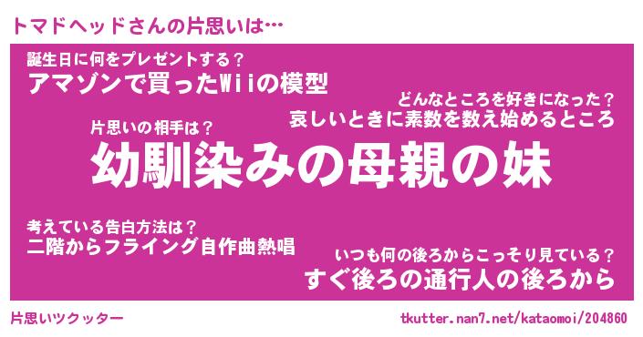 | 男性向けラノベタイトル風あだ名 | 『トマドヘッドの憂鬱』 |