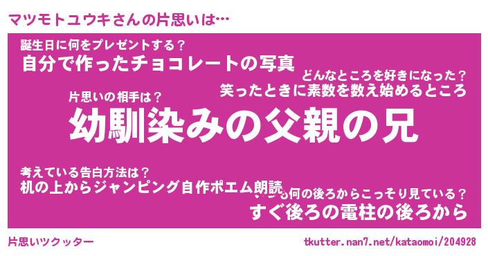 | ヘコむあだ名 | 『マツふぇ~』『つくし』『マツを』 |