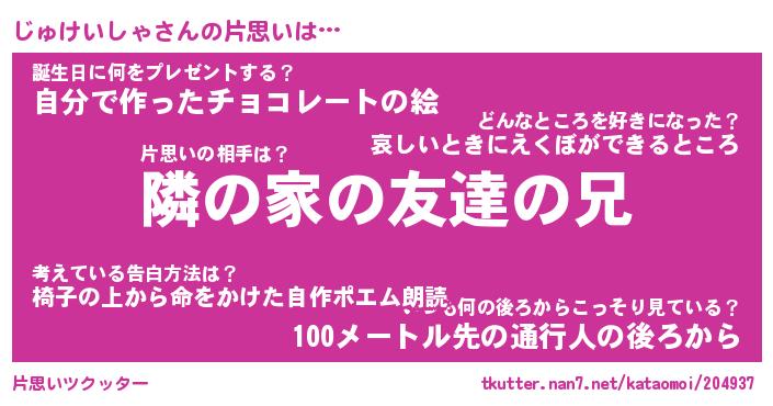 | ヘコむあだ名 | 『じゅっふぃ~』『つくし』 |