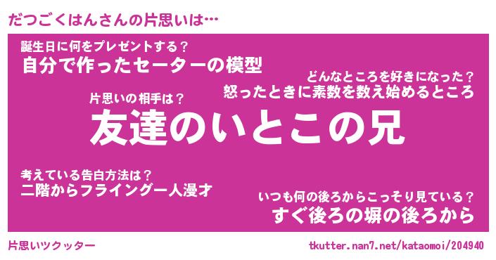 | ヒーロー風カッコイイあだ名 | 『スーパーダツゴクハン』『幻影騎士ダツ』 |