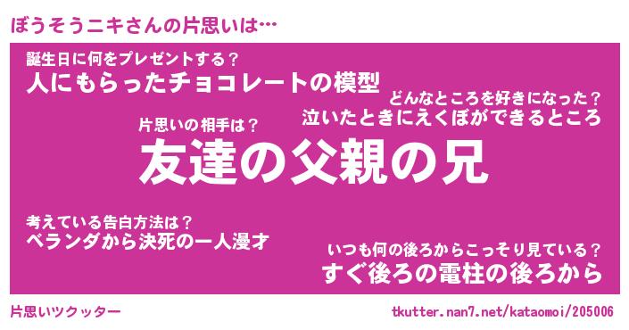 | 胡散臭い通販商品みたいなあだ名 | 『億万長者になれる水晶球…その名も「ぼうそうニキ」』 |