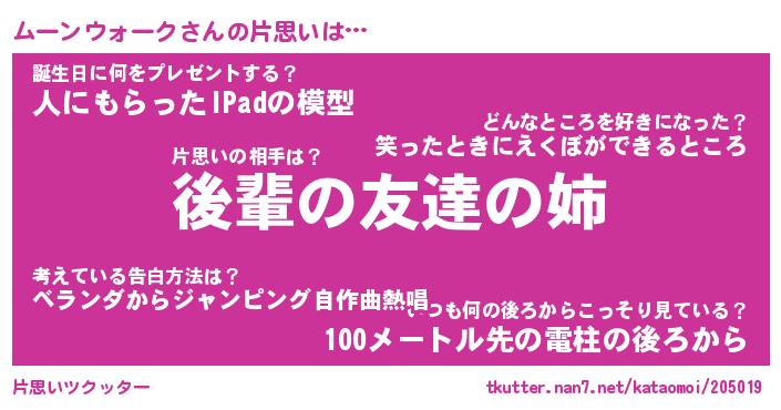| 女子向けラノベタイトル風あだ名 | 『ムーンウォーク姫と円卓の騎士』 |
