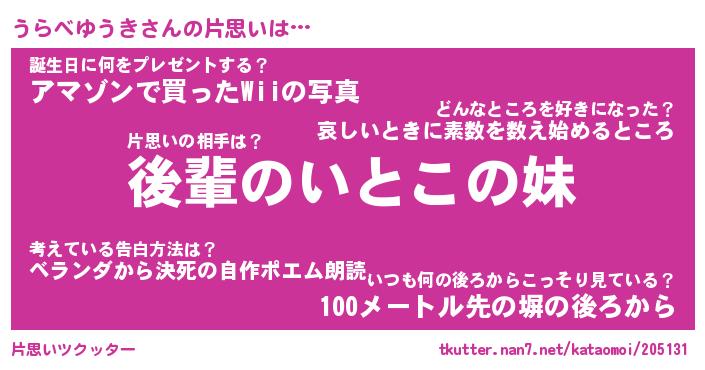 | 意味不明あだ名 | 『ペロリンうらべゆうき』 |