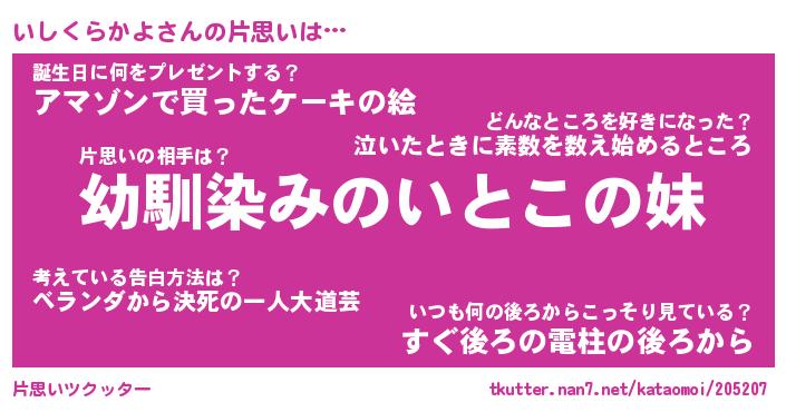 | 胡散臭い通販商品みたいなあだ名 | 『必ず成功する水晶球…その名も「いしくらかよ」』 |