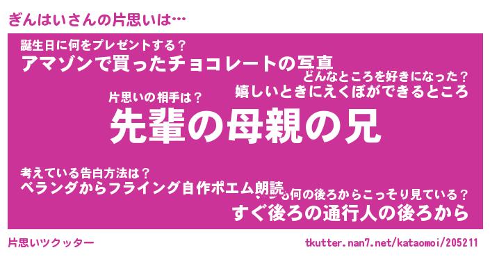 | ヘコむあだ名 | 『ぎんにー』『酢こんぶ』『ぎん太郎』 |