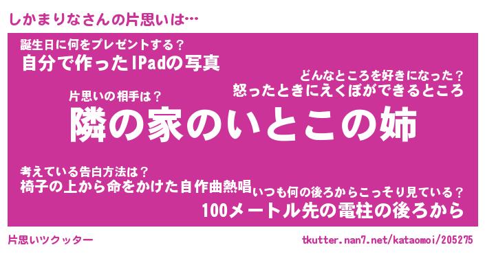 | ヘコむあだ名 | 『しかにゅー』『つくし』 |