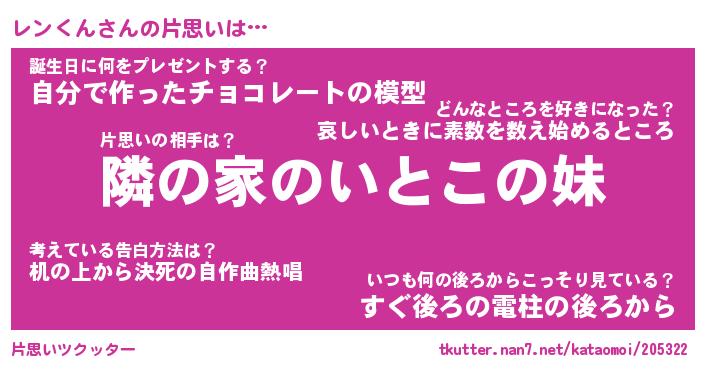 | ヘコむあだ名 | 『レンにゅー』『つくし』『レンお』 |