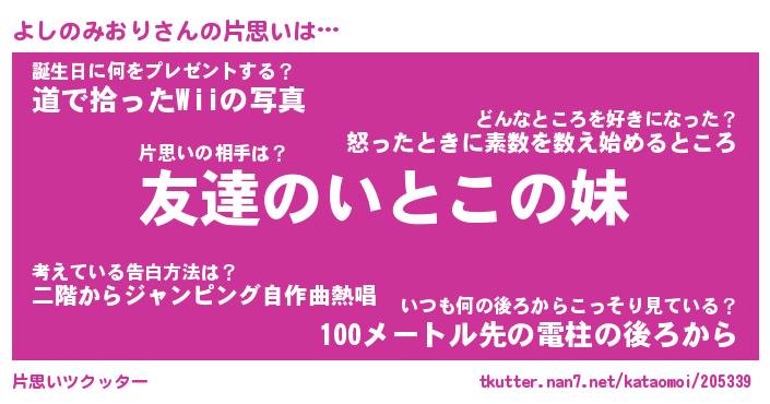 | 胡散臭い通販商品みたいなあだ名 | 『億万長者になれる水晶球…その名も「よしのみおり」』 |
