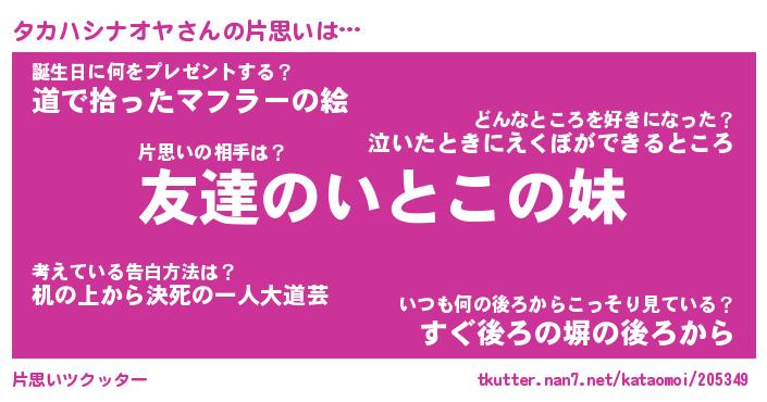 | ヘコむあだ名 | 『タカもー』『牛乳』『タカっ子』 |