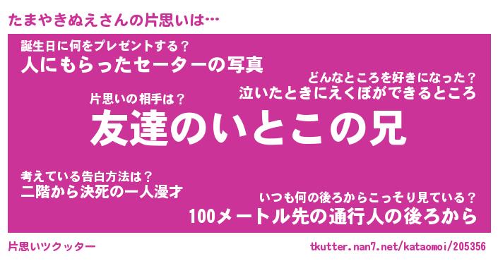 | 肩書あだ名 | 『たまやきぬえ店長』『たまやきぬえ団長』 |