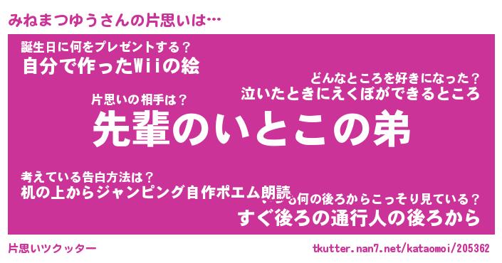 | ヘコむあだ名 | 『みねにゅー』『つくし』 |