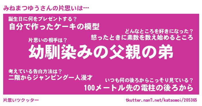 | 胡散臭い通販商品みたいなあだ名 | 『必ず成功するブレスレット…その名も「みねまつゆう」』 |