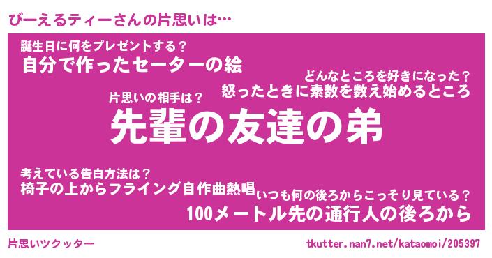 | ヘコむあだ名 | 『びーっふぃ~』『つくし』『びーを』 |