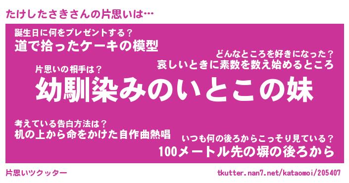 | ヘコむあだ名 | 『たけもー』『豆乳』『たけっぺ』 |