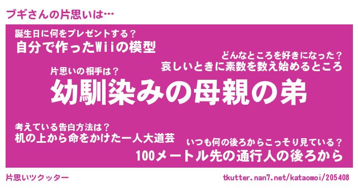 | ヘコむあだ名 | 『ブギにー』『つくし』『ブギ太郎』 |