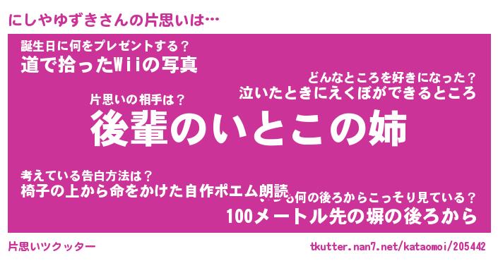 | ツイッター | にしやゆずきさんのツイッターID『namakemono_idle』 |