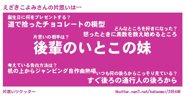 | ヘコむあだ名 | 『えざもー』『牛乳』『えざぷりん』 |