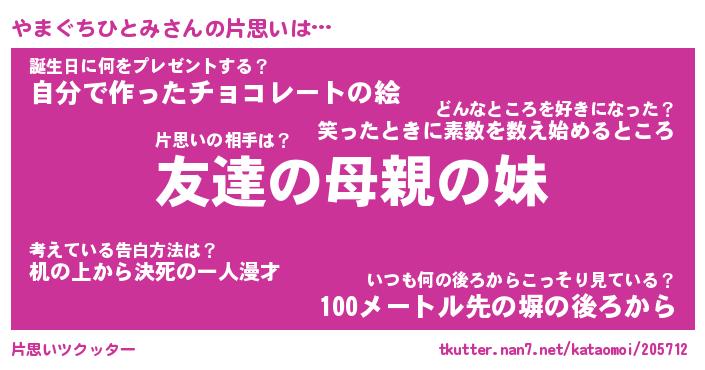 | 伝説のあだ名 | 『封印されし竜騎士やまぐちひとみ』 |