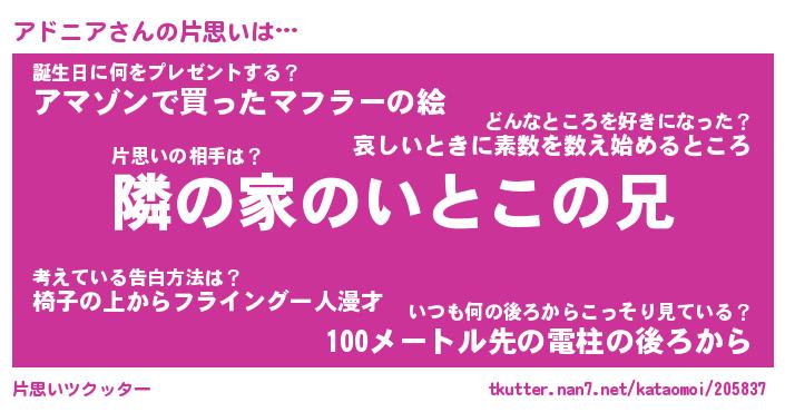| ヘコむあだ名 | 『アドもー』『つくし』『アドを』 |