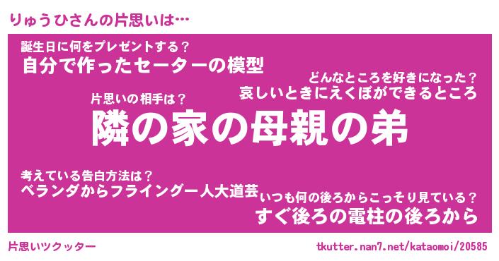 | 胡散臭い通販商品みたいなあだ名 | 『必ず成功するブレスレット…その名も「りゅうひ」』 |