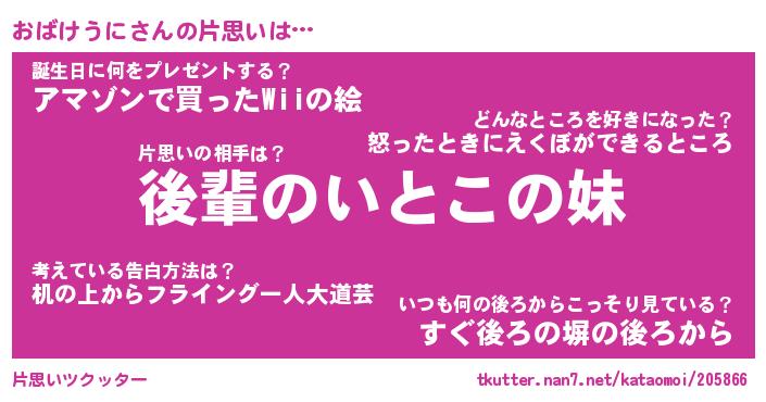 | ヘコむあだ名 | 『おばもー』『なまこ酢』 |