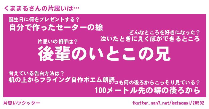 | ヘコむあだ名 | 『くまにゅー』『なまこ酢』 |