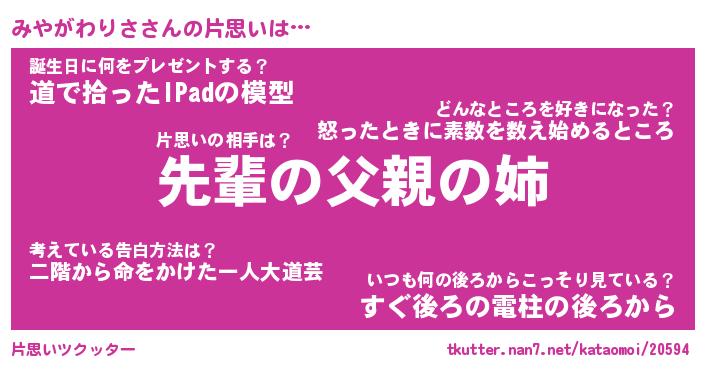 | 男性向けラノベタイトル風あだ名 | 『みやがわりさの憂鬱』 |
