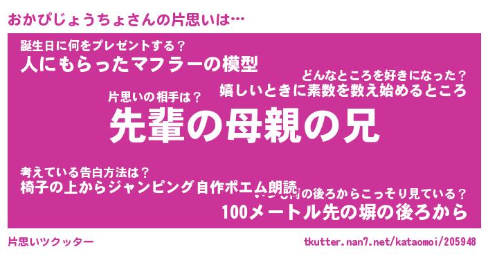 | 女子向けラノベタイトル風あだ名 | 『おかぴじょうちょ姫と円卓の騎士』 |