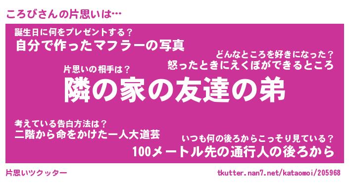| ヘコむあだ名 | 『ころっふぃ~』『つくし』 |