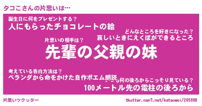 | 男性向けラノベタイトル風あだ名 | 『タコこの憂鬱』 |
