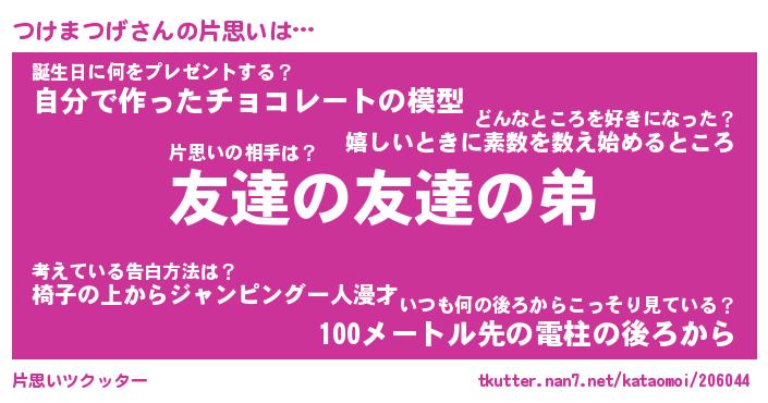 | ファンタジー風あだ名 | 『ツケフェル』『エターナルツケマツゲー』 |