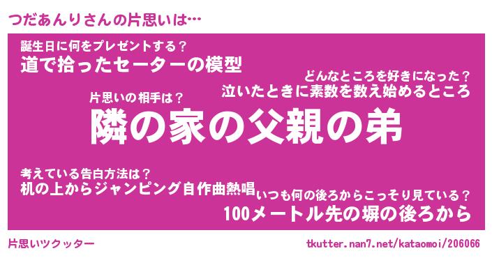 | 胡散臭い通販商品みたいなあだ名 | 『モテモテ間違いなし水晶球…その名も「つだあんり」』 |